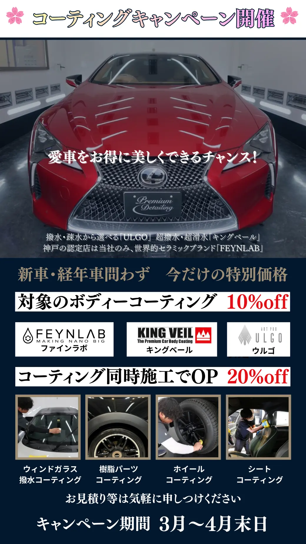 - プレミアムディティーリングでは、ディーラーや他店でのコーティング施行車両のメンテナンスもお受けしております。まずはお問い合わせください。
